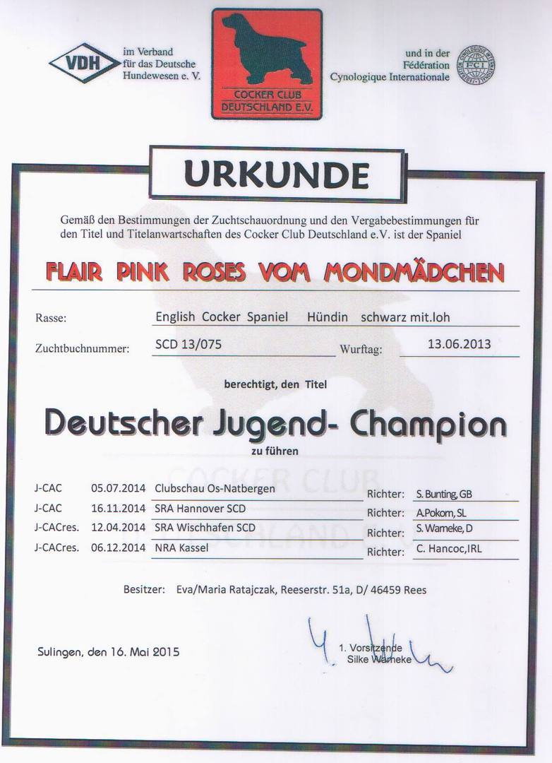 uneingeschränkt zur Zucht zugelassen